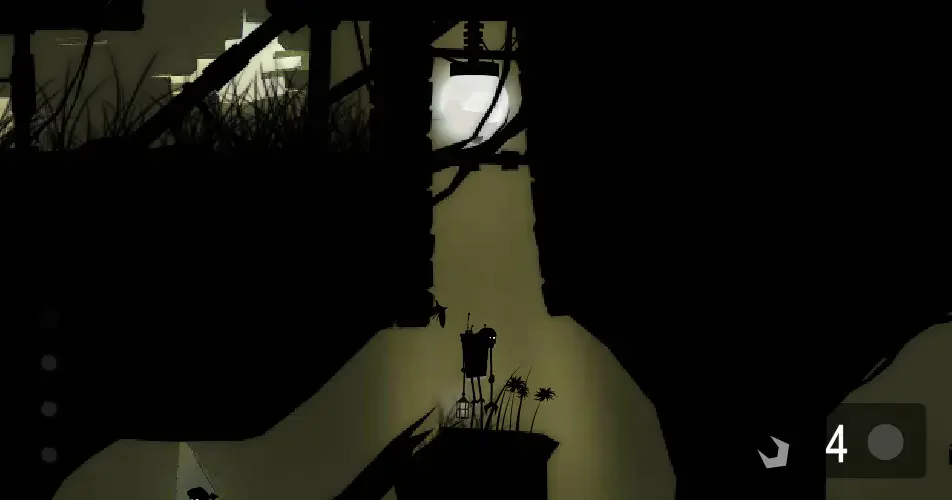 正式进入第一章节就会是这个画面,现在你所控制的机器人仍然只能左右移动和跳跃,这是因为你还没激活他的技能。机器人一共有三个技能,会在接下来的游戏过程中依次激活。