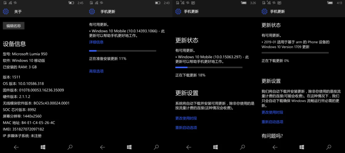 作为微软 2015 年推出的一款旗舰机, Lumia 950 收到的最后更新是 2020 年的安全更新,收到的最后一版系统大更新是众所周知的 1709,我在拿到手机后,经过了四次系统下载更新,花费了接近三个小时。