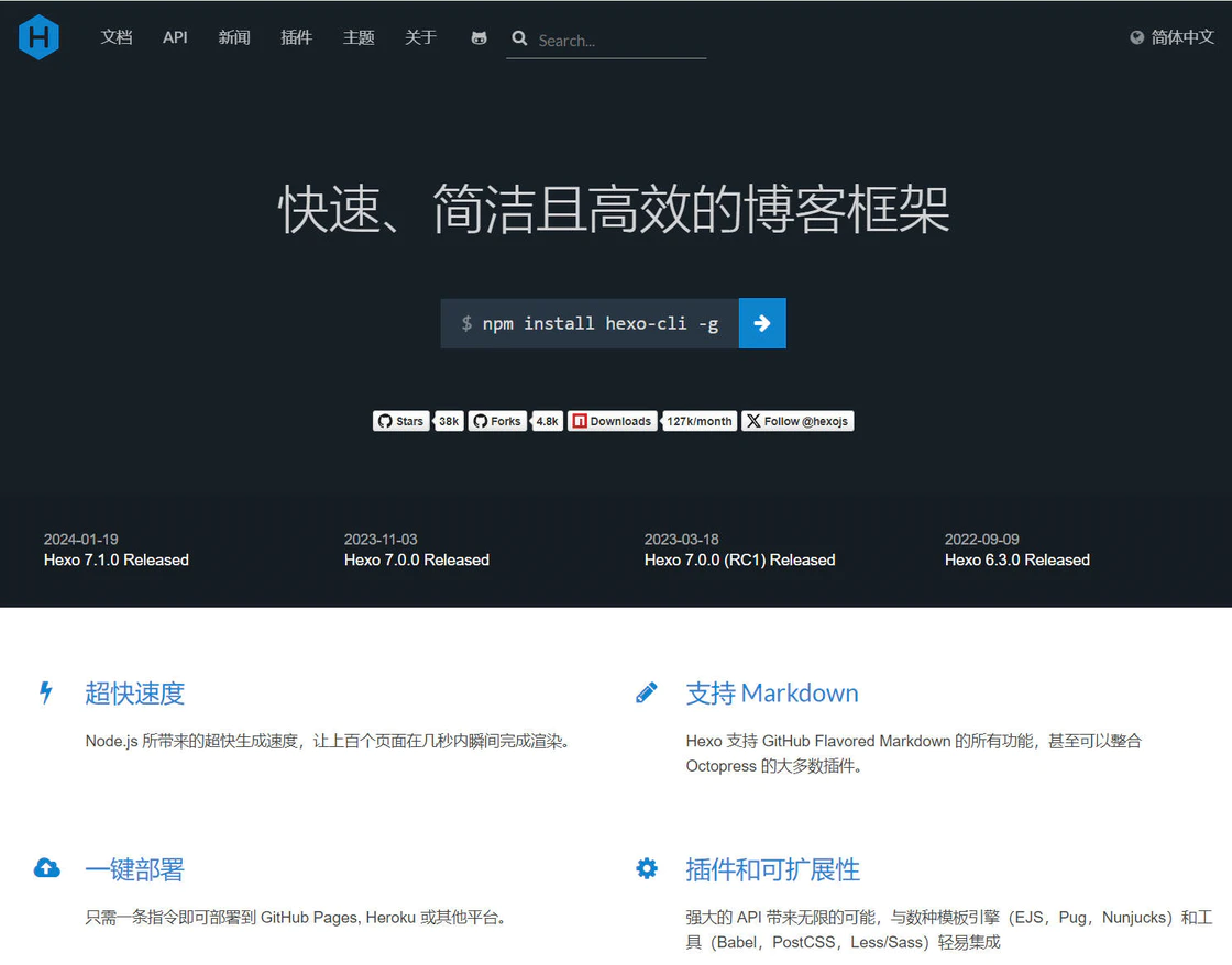 Hexo 是我使用了一段时间 Halo 托管的博客网站后,个人认为必要的一个备选方案。