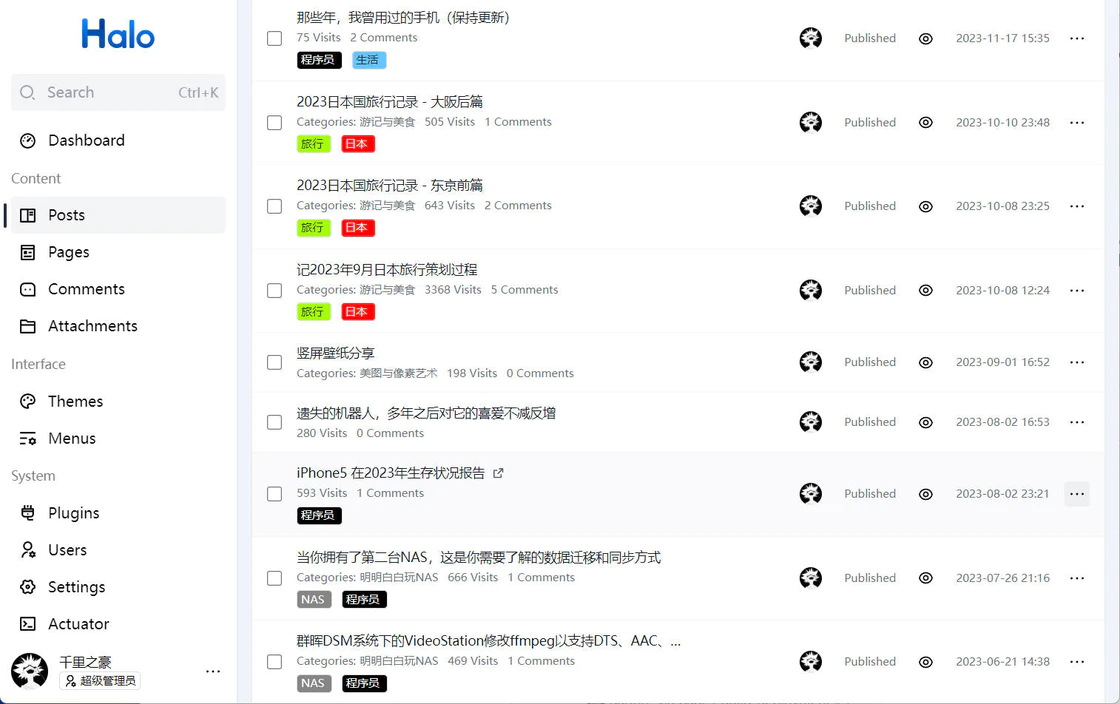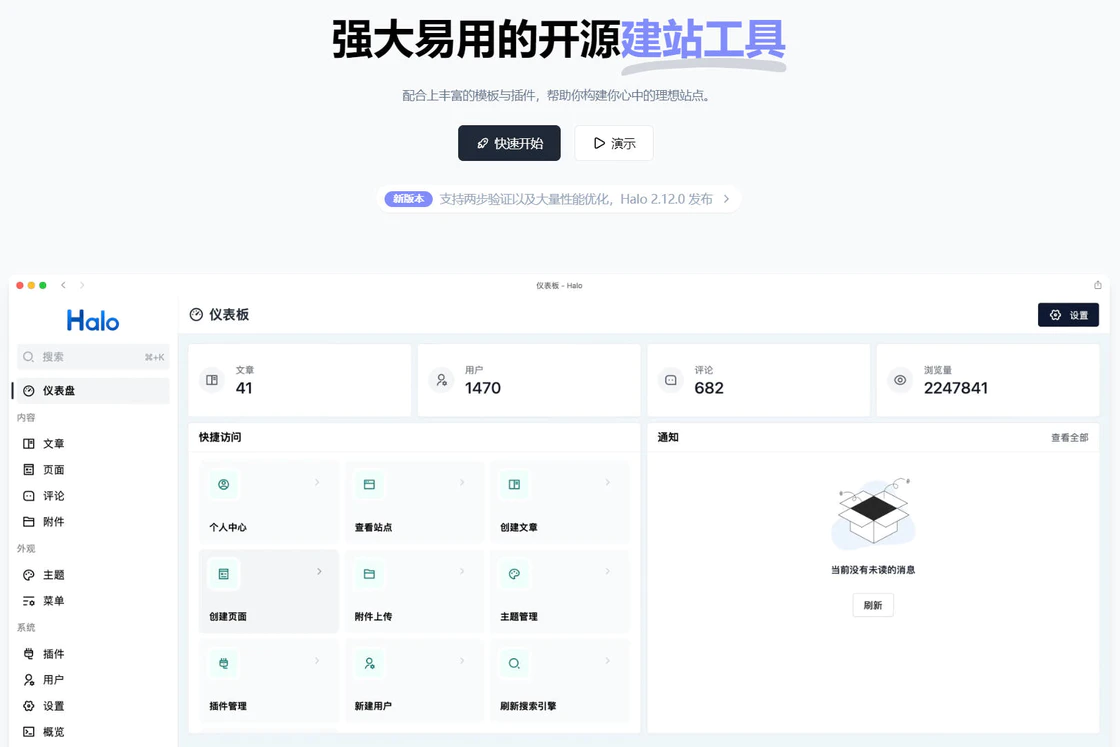 这次重启博客,我想找一个带后台、省心的工具,于是就用上了这个:Halo。